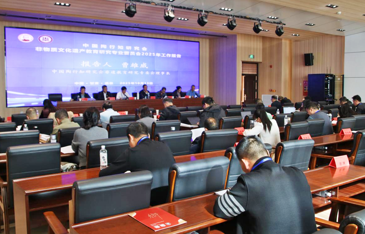 2025年10月13日至14日,中国陶行知研究会非遗教育研究专委会2025年工作年会及相关研讨活动在酒泉职业技术大学顺利举行。中国陶行知研究会原常务副会长吕德雄,酒泉职业技术大学党委书记易志军,中国陶行知研究会非遗专委会理事长、安徽省行知学校党总支书记曹雄威等来自中陶会专委会理事长单位、副理事长单位以及相关代表等50余人参会。