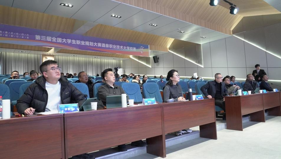 要闻快递 > 正文2026年1月14日,第三届全国大学生职业规划大赛酒泉职业技术大学校赛决赛在弘毅楼闻道厅举行。本次大赛以“筑梦青春志在四方,规划启航职引未来”为主题,是我校深入贯彻国家关于高校毕业生就业工作部署、落实教育部及省级赛事要求的重要举措,也是学校深化生涯教育、推动高质量就业的关键一环。学校党委委员、副校长杨洁出席大赛并作总结发言。各学院分管院领导、就业干事、项目指导教师及团队成员共计100余人参加活动。
