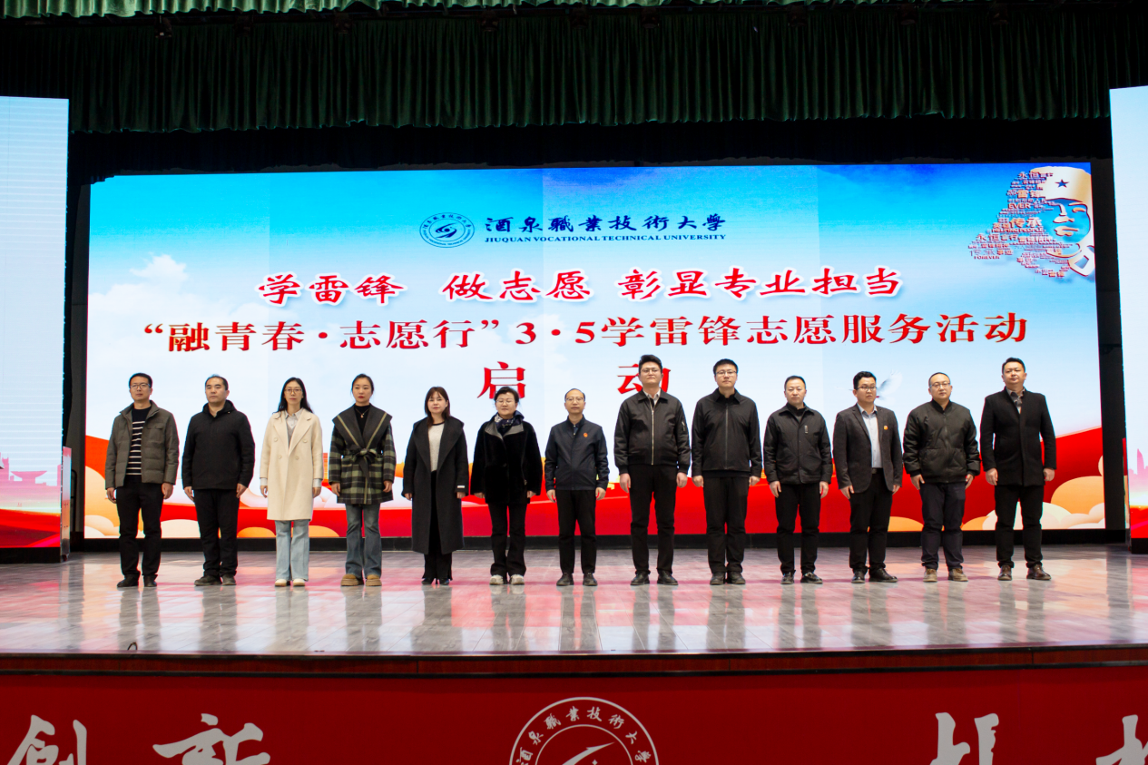 要闻快递 > 正文在第63个学雷锋纪念日和第27个中国青年志愿者服务日来临之际,2026年3月4日下午,酒泉职业技术大学“学雷锋 做志愿 彰显专业担当--‘融青春·志愿行’3·5学雷锋志愿服务活动”启动仪式在胡杨文化活动中心举行。党委委员、副校长高翔出席活动。学生工作部、校团委相关负责人,各二级学院分管学生工作副院长、团委书记及志愿者代表共同参加活动。