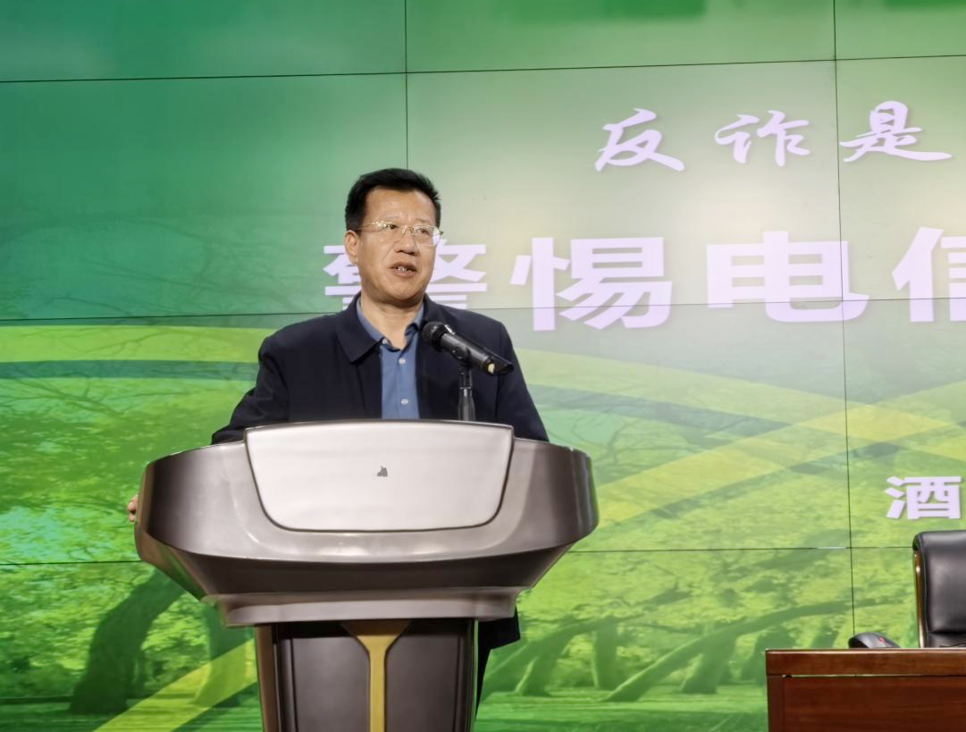 要闻快递 > 正文为深入贯彻落实省教育厅关于开展“法治教育开学第一课”的工作部署,结合学校2026年春季学期法治宣传教育主题班会安排,切实增强学生法治素养与防范电信网络诈骗能力。2026年3月12日晚,学校在弘毅楼C座101闻道厅举办“警惕电信诈骗·守护青春年华”安全教育专题讲座。讲座邀请酒泉市公安局肃州分局刑事侦查大队副大队长童国卿担任主讲。学校党委委员、副校长王金明主持活动。学生工作部负责人、各学院师生代表现场参加,全体在校学生8000余人通过线上直播方式同步收看学习。